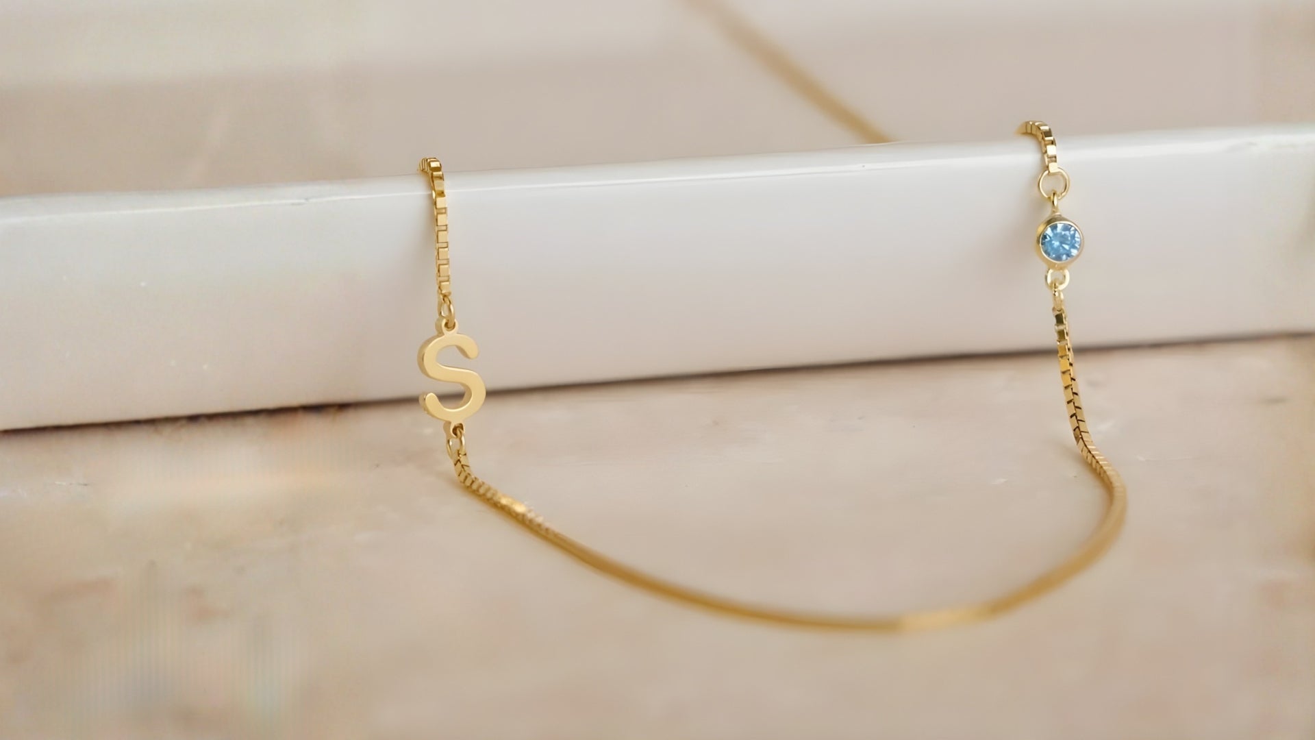 Personalize your style with your initial and birthstone. A unique piece that tells your story!