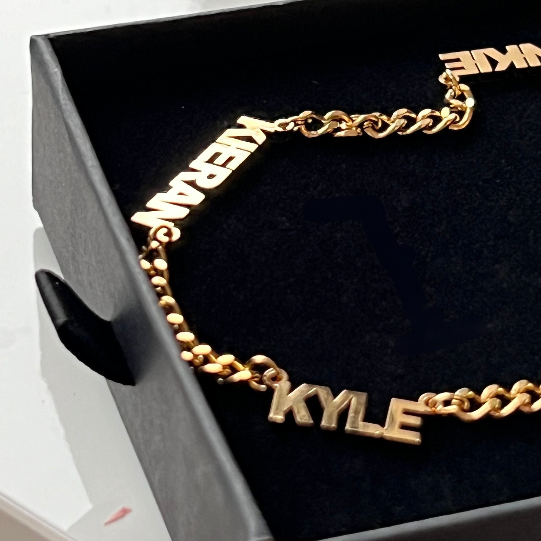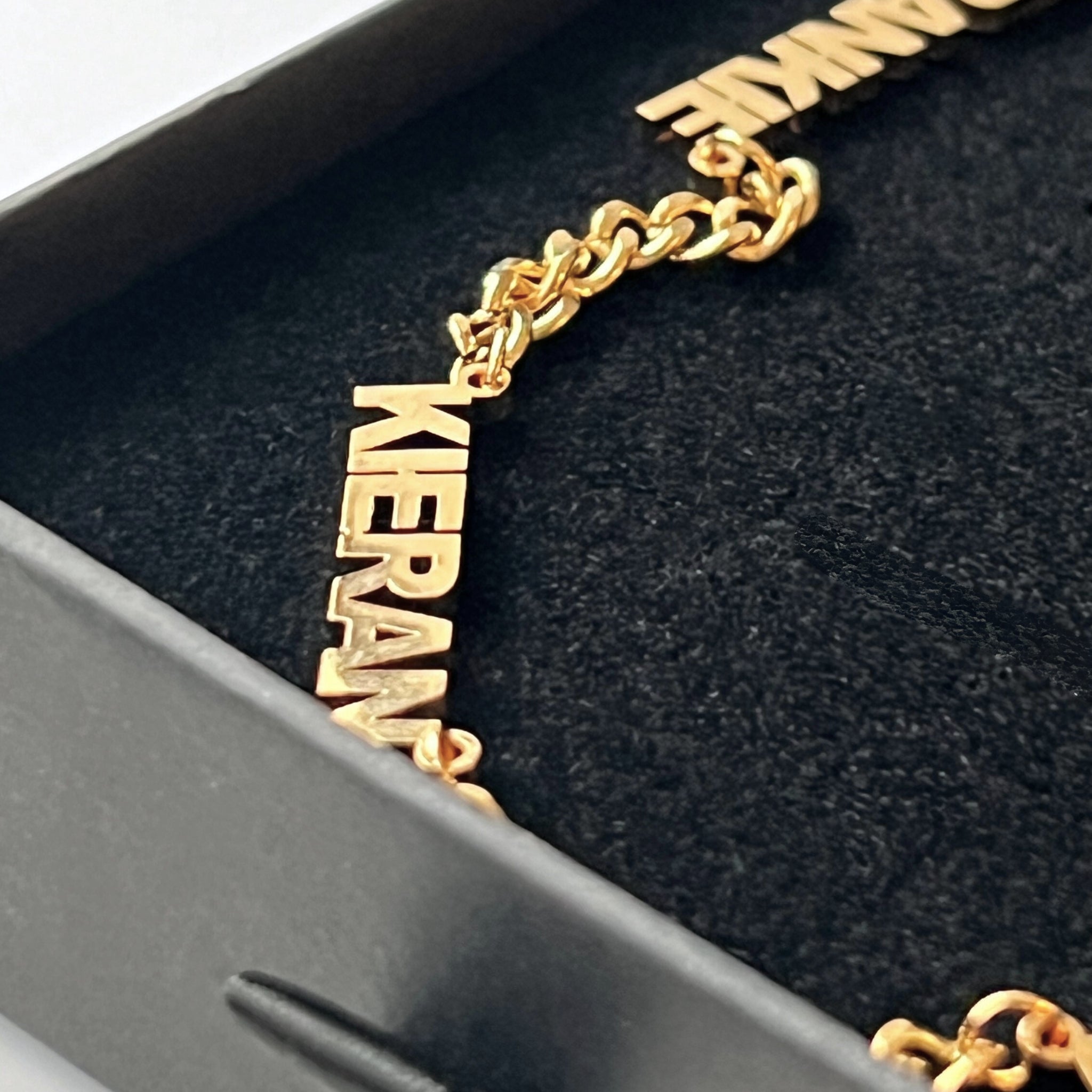 Celebrate your unique identity with our "I Am Who I Am" Nameplate Bracelet, a bespoke accessory designed to honor your individuality. Custom-made to order, this bracelet features a sturdy curb chain adorned with a bold nameplate, showcasing up to four names in capitalized letters. The font style exudes strength and character, reflecting the essence of your identity. Each name represents a significant connection or aspect of yourself, making this necklace a meaningful expression of your journey and relationships. Make a statement of authenticity and empowerment with our "I Am Who I Am" Nameplate Bracelet, a symbol of self-discovery and acceptance.