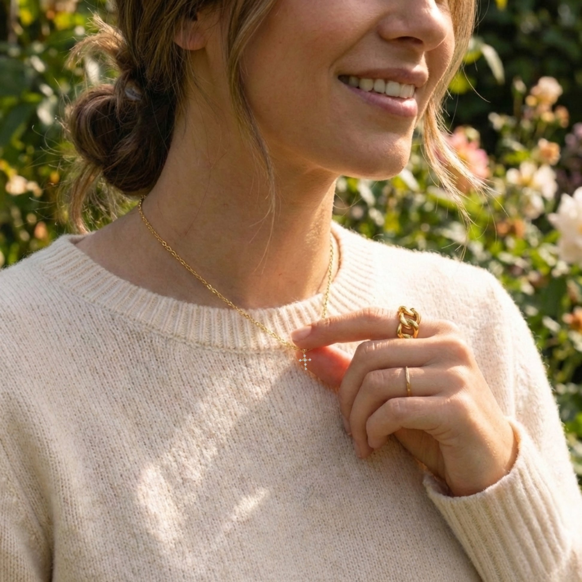 True beauty lies in the intricate details of one's journey. The Guided By Light Necklace is a refined, feminine tribute to the steadfast beliefs that guide you. Featuring a petite, ornate cross encrusted with brilliant-cut crystals, this necklace captures and reflects light from every angle. It is a modern heirloom designed for the woman who carries her faith with quiet confidence—a shimmering reminder that you are always anchored in light and surrounded by grace.